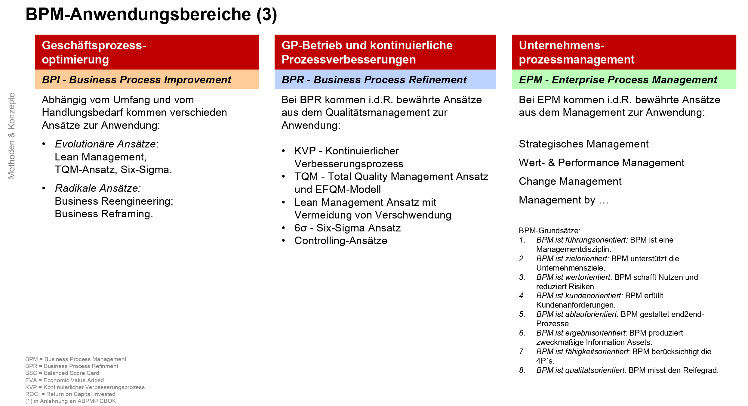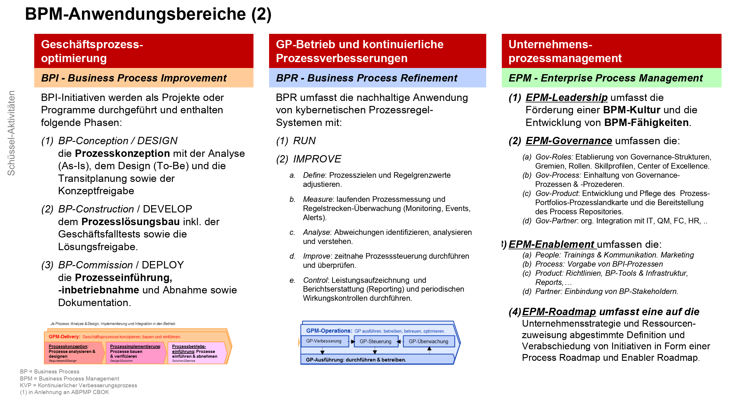 Der Auftrag an das Geschäftsprozessmanagement umfasst dabei drei Anwendungsbereich.